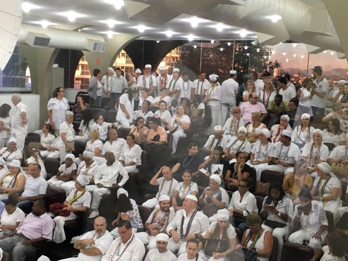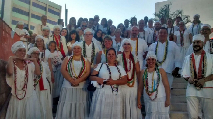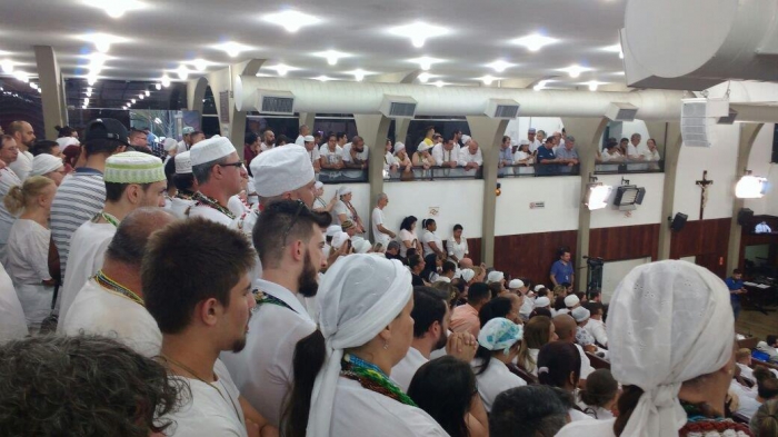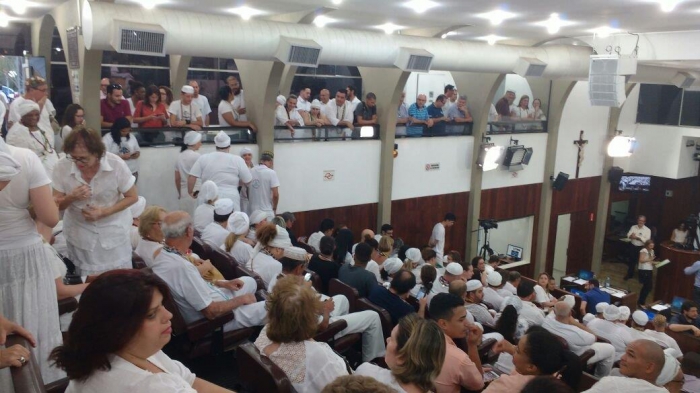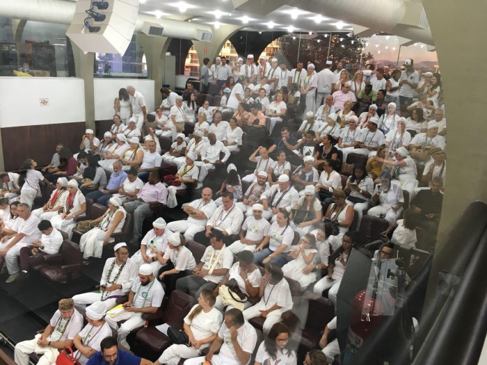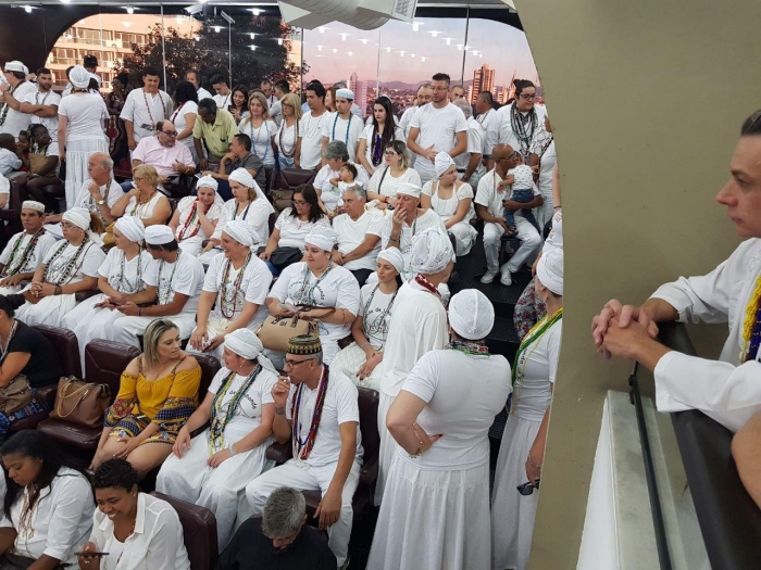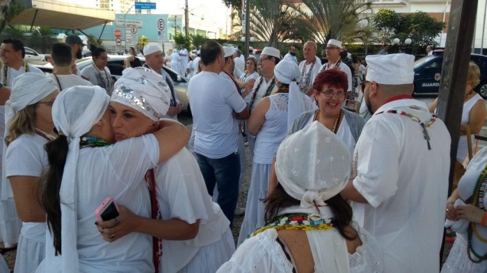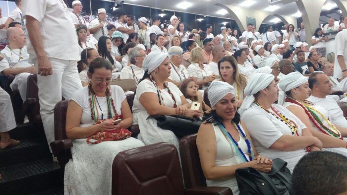 Um mar de gente vestida de branco e com guias coloridas no pescoço se fez notar em evento na Câmara Municipal da cidade de Jundiaí na véspera do Dia da Umbanda.