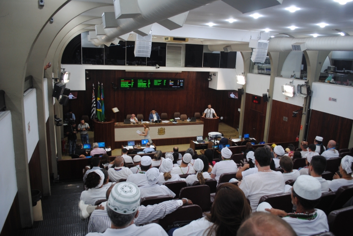 Com postura de respeito a todas as religiões, mais uma vez a UniTerreiros – União das Comunidades de Terreiros de Jundiaí e Região, participou da homenagem dos 110 anos de fundação da Umbanda no Brasil (15 de novembro), na terça-feira, 13 de novembro, na Câmara Municipal de Jundiaí, por iniciativa do vereador, delegado Paulo Sergio Martins. Praticantes das religiões de matriz afro, umbandistas e candomblecistas, prestigiaram o ato mostrando o orgulho em vestir o branco, usar os fios de contas e praticar a caridade.